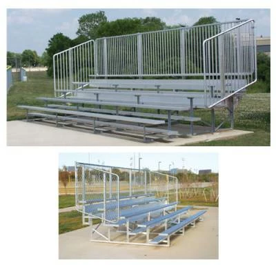 - Bleachers include aluminum vertical picket guardrail system. Pickets are welded for faster and easier installation.