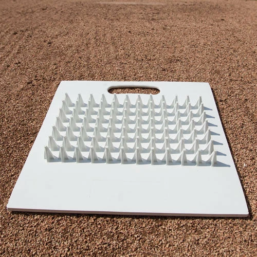 Durable synthetic material. UV protected to withstand outdoor conditions. Extended side panel. Built in handle for easy transport. For use with football, soccer, baseball as well as any other sport cleat.