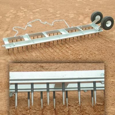 - Included pull chain attaches the groomer to compatible lawn equipment for maneuvering around the diamond