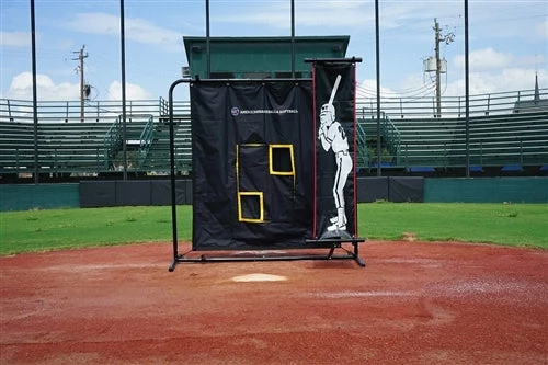 The Muhl Tech 3D Pro Pitching Target is a great pitcher’s aid for both baseball and softball. The 72″ H x 72″ W canvas target with velcro pocket blocker is ideal for training pitchers of all ages to locate pitches to any of the 4 corners of the strike zone. By simply moving the pocket blocker to the desired location, the pitcher can isolate two corners of the strike zone and hone in the skills necessary to locate pitches, which is essential to becoming a successful pitcher. Pitched balls thrown within the strike zone are collected in an internal pouch for easy gathering. The 3 dimensional canvas batter offers a great visual to the pitcher, simulating a real batter standing in the batter’s box. Push pins make the 3D batter easily moveable to both sides for both right handed and left handed batter simulation. The durable canvas can withstand 90+mph pitching and the durable 1.5″ powder coated steel bolt together frame makes this an overall great value. |